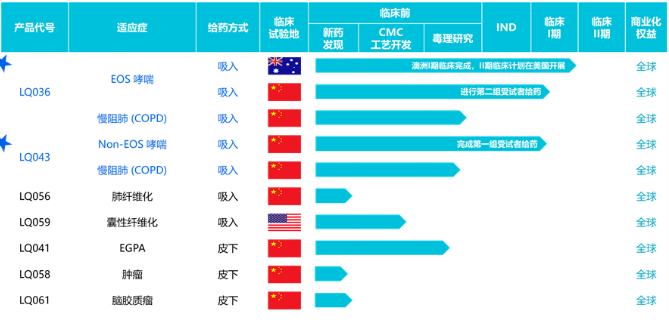 evo视讯官网生物的研发管线中,还包括治疗肺纤维化的LQ056和治疗囊性纤维化的LQ059,同样采用吸入给药。